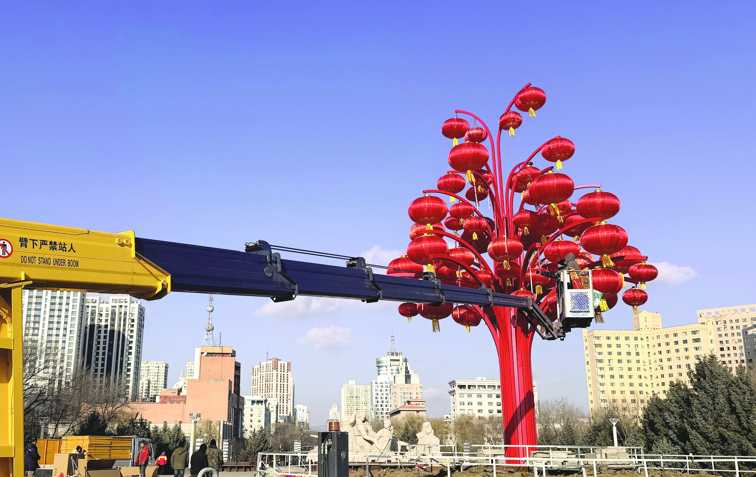 日前,江滨公园广场上正在加紧建设盛放红花造型的灯笼灯光雕塑。据了解,我市将在牡丹江站站前广场、江滨公园等市区多个位置搭建灯笼灯光雕塑,营造浓厚的冬季节日氛围。