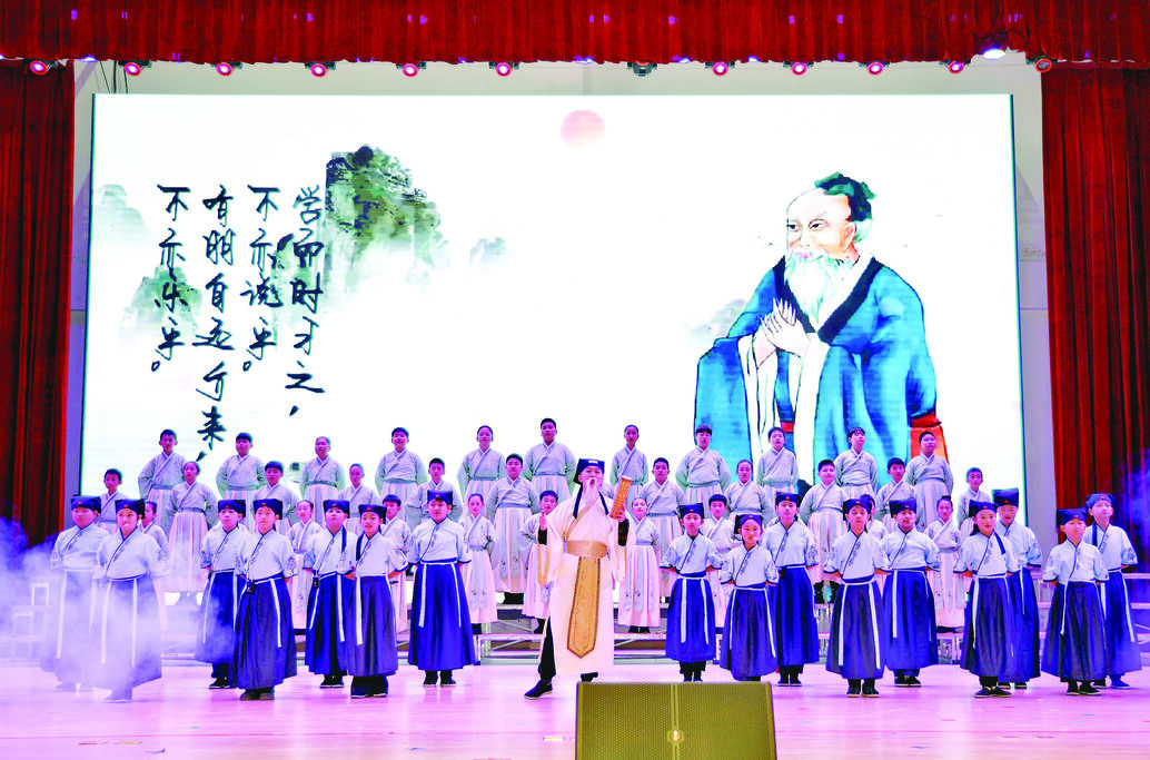 日前,由市教育局主办的“诵读国学经典,传承中华文脉”——牡丹江市“国学经典进校园”阶段成果展演暨第二批试点启动大会在立新实验小学江南校区剧场举行?;疃ü榫袄仕小⒁粑枋榛?、家校剧场等多元形式,彰显了我市国学经典教育“以文化人、以文育人”的显著成效。