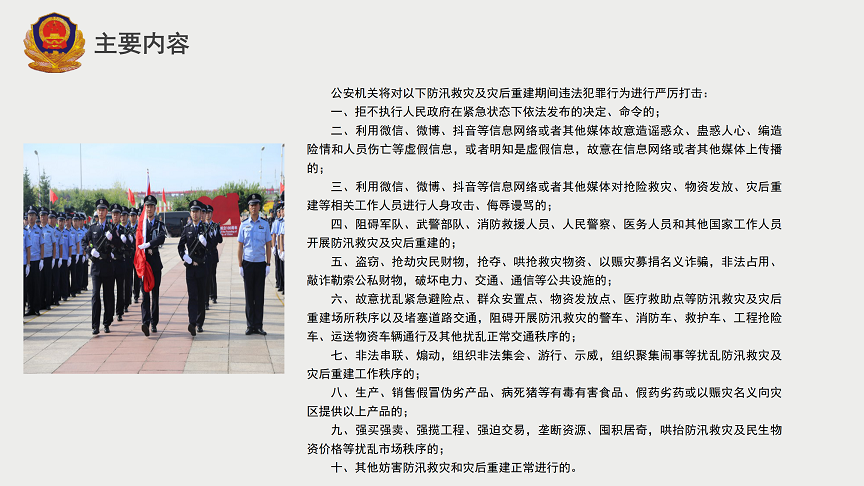 【图解】政策解读:牡丹江市公安局关于严厉惩治妨害防汛救灾及灾后重建违法犯罪行为的通告