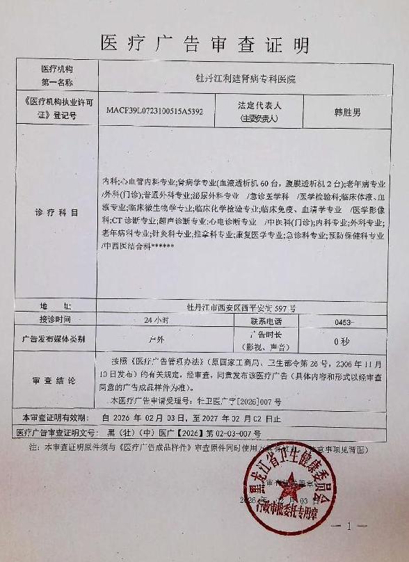 牡丹江利建肾病专科-医疗广告审查材料(户外)