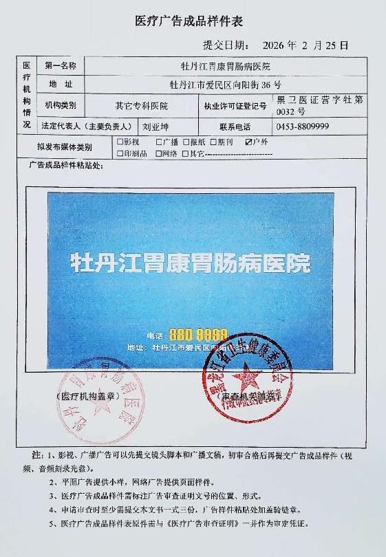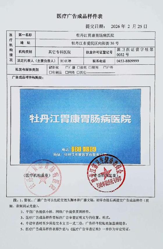 牡丹江胃康胃肠病医院-医疗广告审查材料(影视、广播、户外、网络)