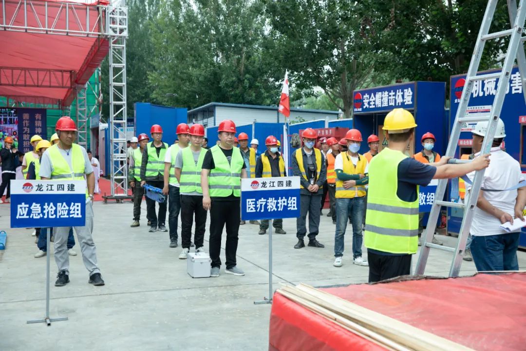 会上省四建公司党委副书记、总经理王晓军代表企业进行经验介绍、牡丹江市住建局副局长毕传鹏同志讲话。观摩会现场,与会人员集中观看高处坠落事故警示教育片、应急救援演练(高坠事故),参观样板标准间、体验区。