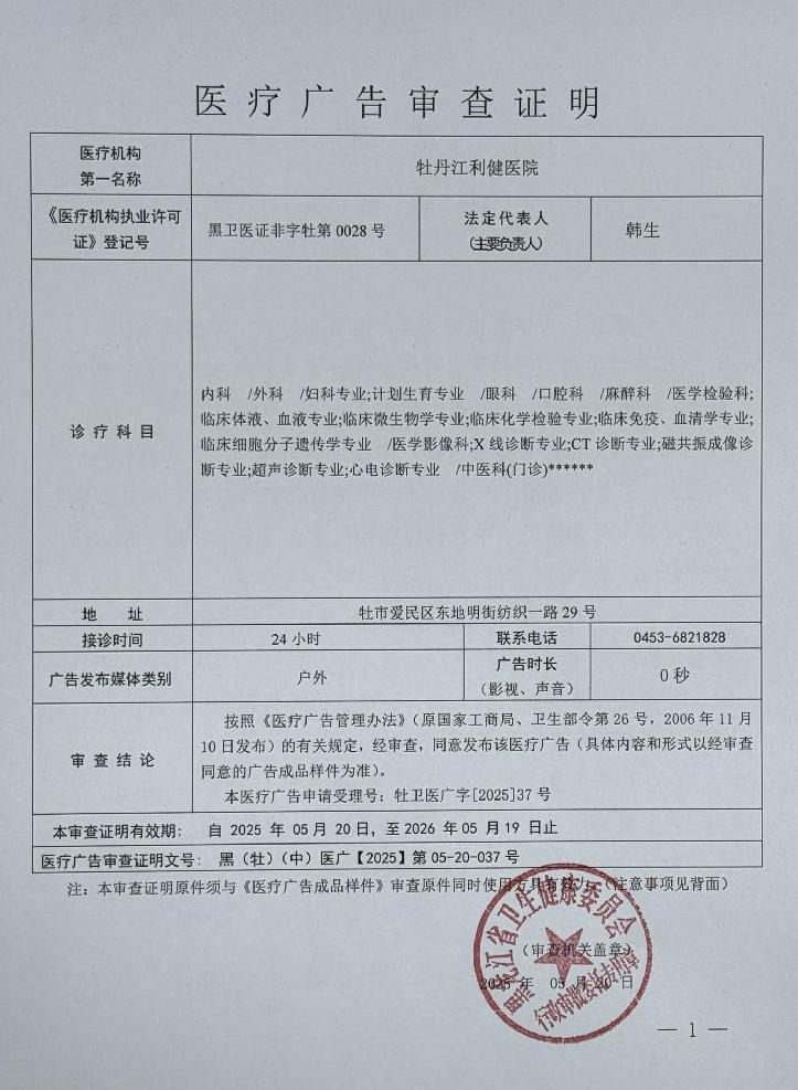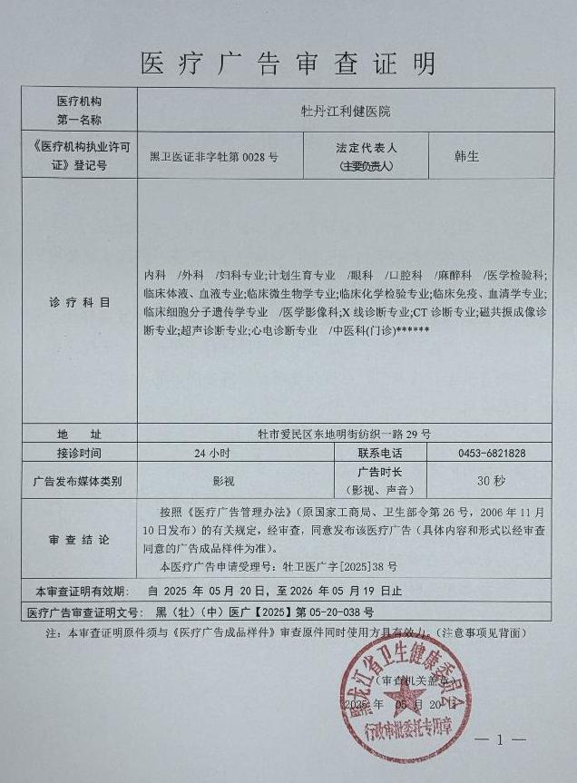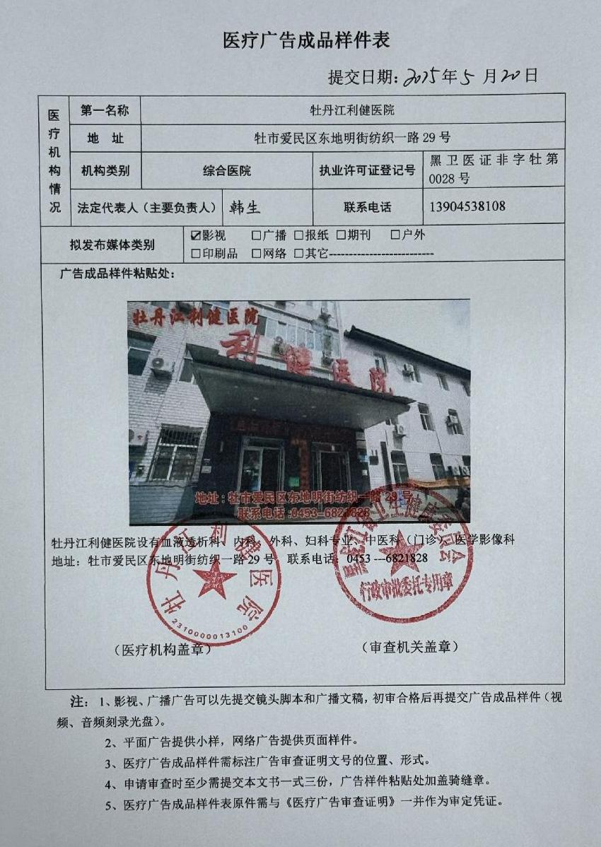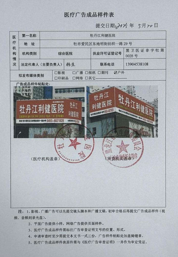 • 牡丹江利健医院-医疗广告审查材料(户外、影视)