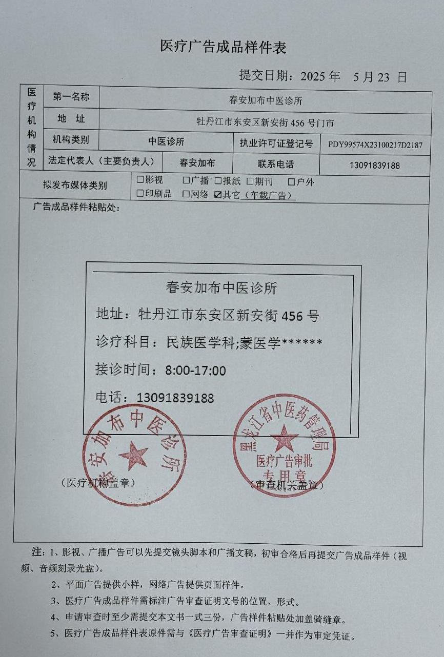 春安加布中医诊所-医疗广告审查材料(其他-车载广告)