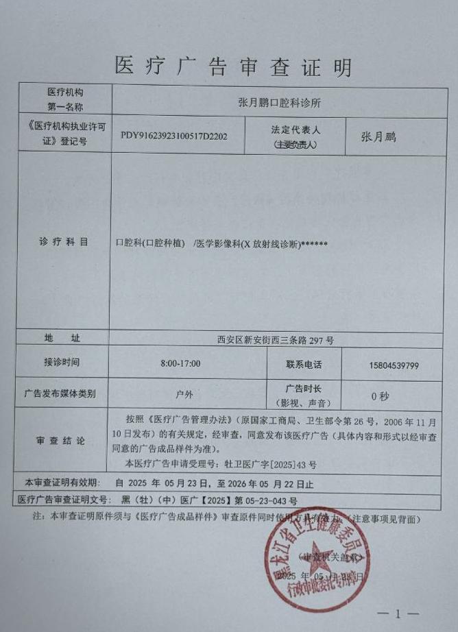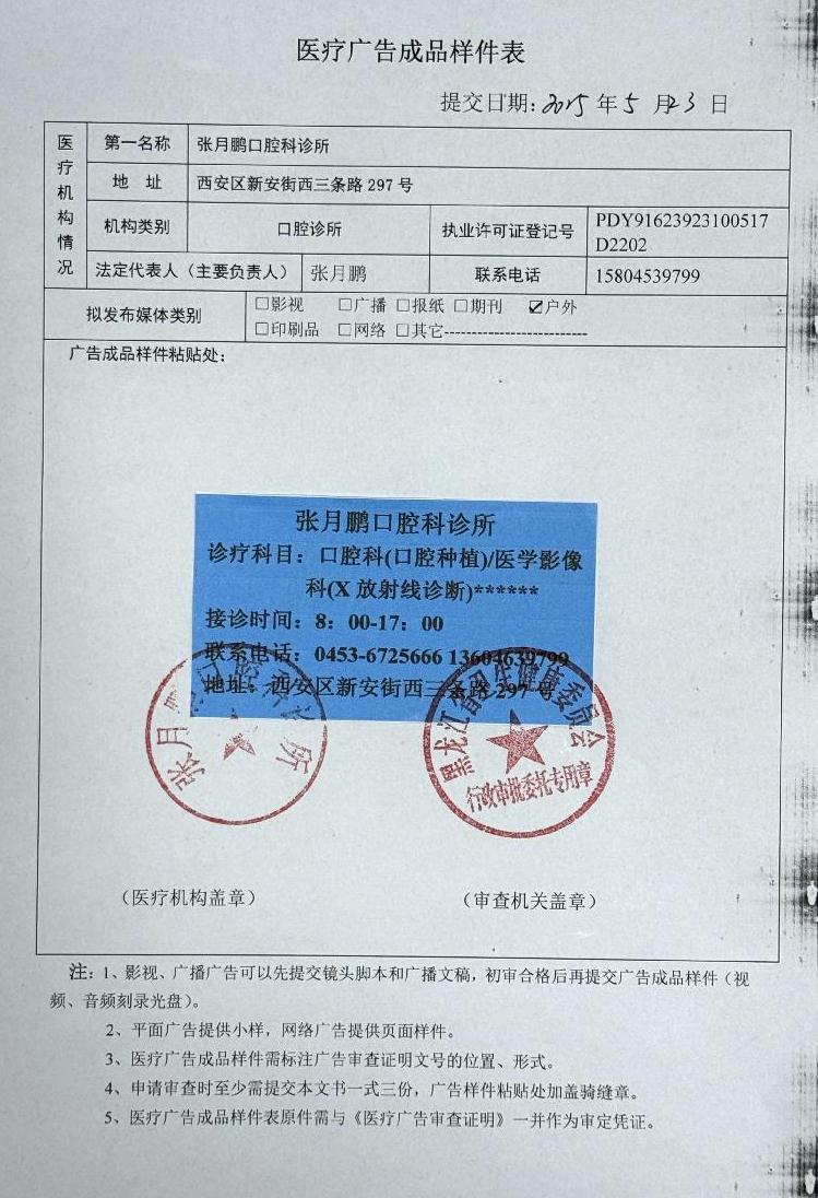 • 张月鹏口腔科诊所-医疗广告审查材料(户外、网络)