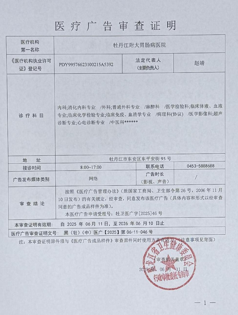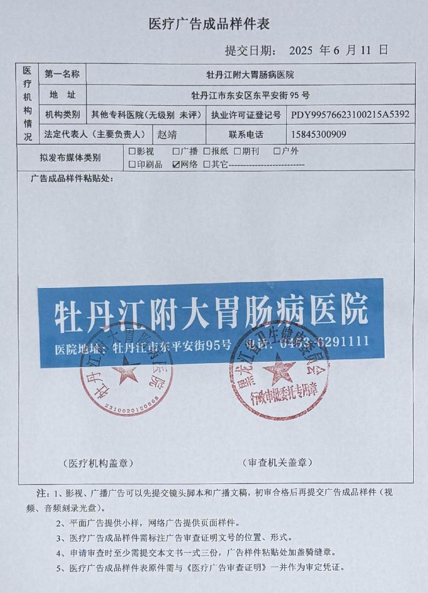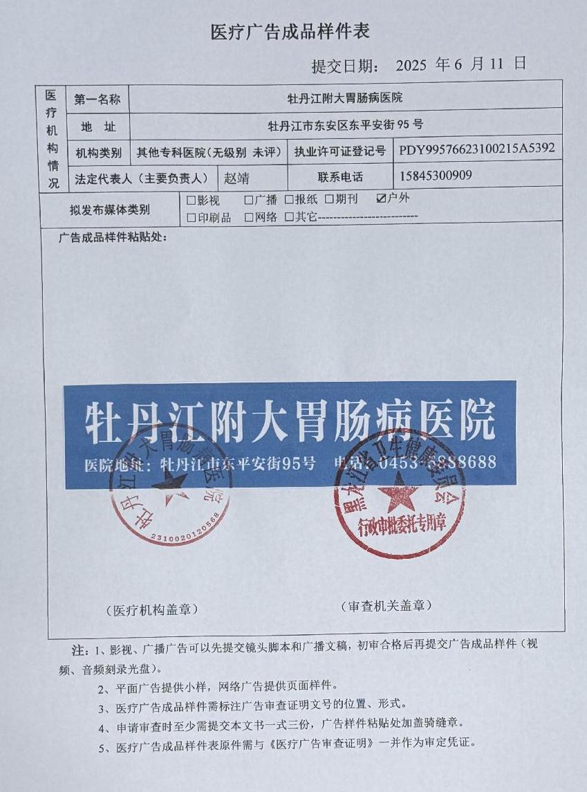 牡丹江附大胃肠病医院-医疗广告审查材料(户外、网络)