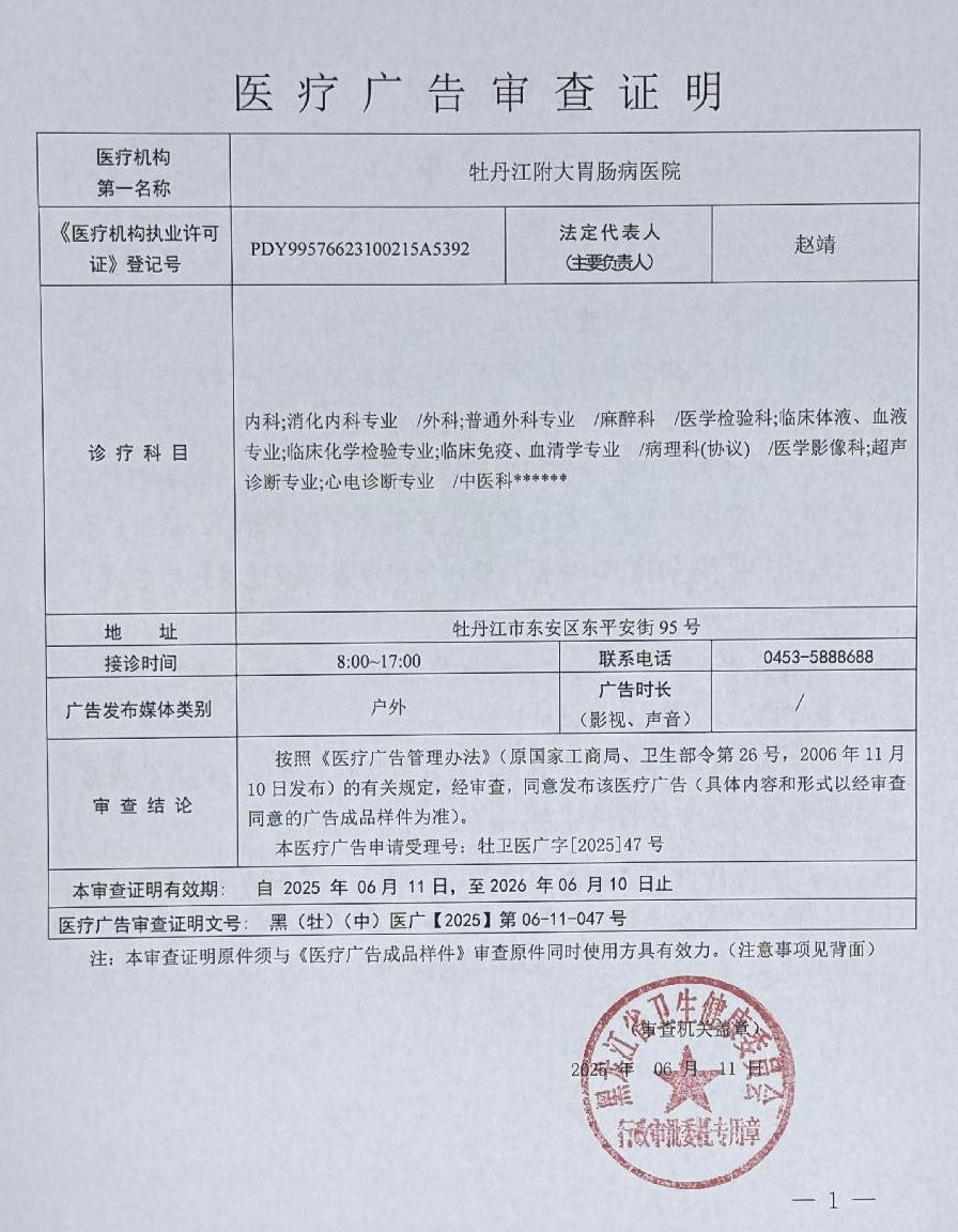• 牡丹江附大胃肠病医院-医疗广告审查材料(户外、网络)