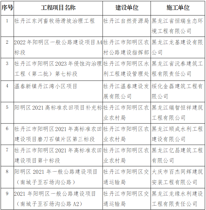 公示期限为30日,时间从2025年12月24日起至2026年1月22日止。若下列项目存在拖欠农民工工资的情况,请相关人员在公示期内持有关凭证到牡丹江市人力资源和社会保障局进行投诉。