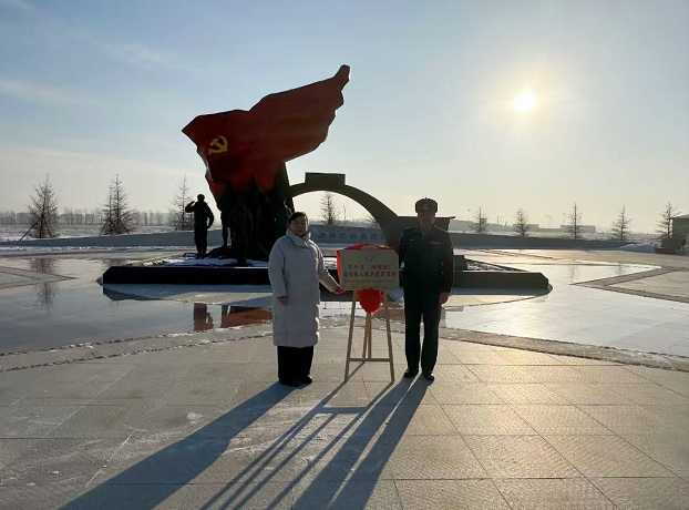 中国人民解放军93066部队副政委石海松和市委拥军优属拥政爱民和退役军人事务工作领导小组办公室副主任、市退役军人事务局副局长张燕共同为“牡丹江市‘橄榄绿’退役军人红色教育基地”揭牌。牡丹江市“橄榄绿”退役军人红色教育基地的建立,是退役军人事务系统贯彻习近平总书记对退役军人工作重要指示和全国退役军人工作会议精神的实际行动和职责所在,是加强退役军人思想政治引领、传承红色基因、弘扬东北老航校精神的重要阵地。它承载着铭记历史、缅怀先烈、教育后人的重要使命,对于激励广大退役军人永葆军人本色,积极投身社会建设具有重要意义。
