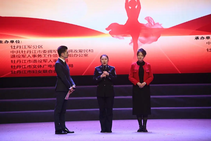 柔肩扛重任,巾帼显担当。为大力弘扬拥军优属光荣传统,切实提高军人家庭的荣誉感,在全社会营造支持国防事业、关心军嫂的良好氛围,在“三八”国际劳动妇女节来临之际,3月7日,由牡丹江军分区、中共牡丹江市委拥军优属拥政爱民和退役军人事务工作领导小组办公室、牡丹江市退役军人事务局、牡丹江市文体广电和旅游局、牡丹江市妇女联合会主办,中国人民解放军93066部队、牡丹江市群众艺术馆承办的“铿锵玫瑰绽芳华 戎装后盾耀星河”牡丹江市庆“三八”妇女节致敬军嫂文艺晚会成功举办。市委常委、牡丹江军分区大校司令员赵晓利、牡丹江市退役军人事务局局长、市委拥军优属拥政爱民和退役军人事务工作领导小组办公室主任敖永君、牡丹江军分区政治工作处主任徐云龙、牡丹江市文联主席郭铁平、牡丹江市退役军人事务局副局长张燕、中国人民解放军93066部队、65379部队等相关军地领导参加了此次晚会。