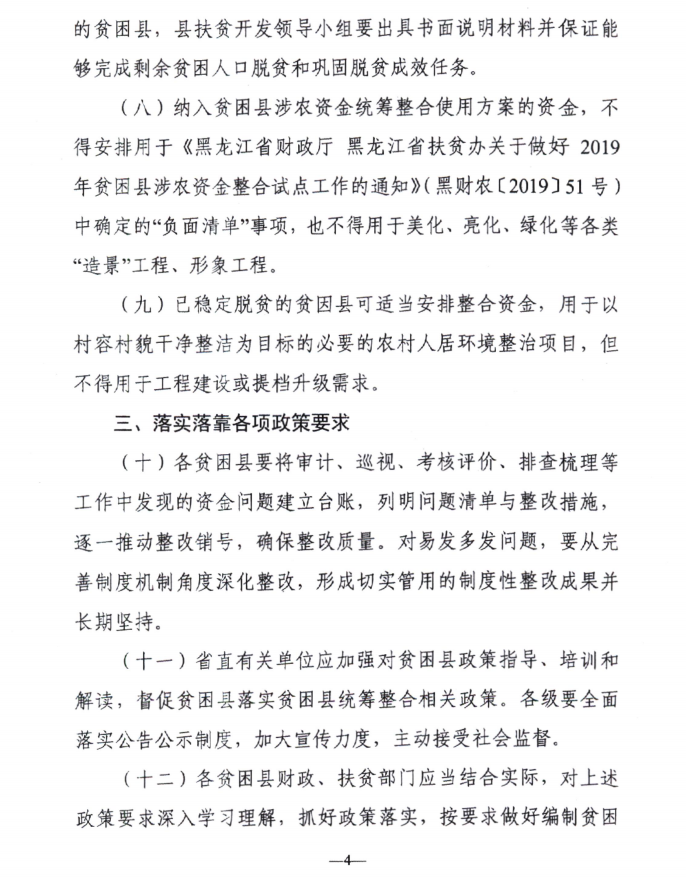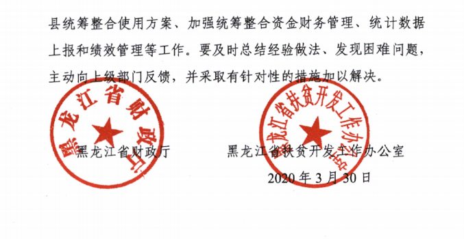 黑龙江省财政厅 黑龙江省扶贫办关于做好2020年贫困县涉农资金整合试点工作的通知 黑财农〔2020〕41号