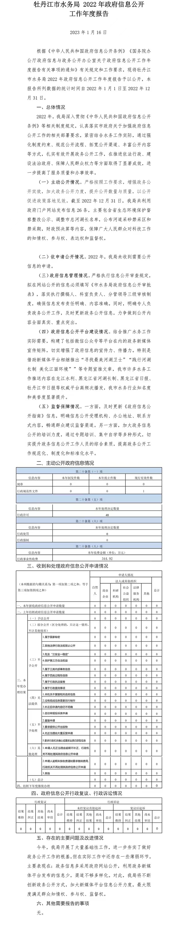 • 牡丹江市水务局2022年政府信息公开工作年度报告