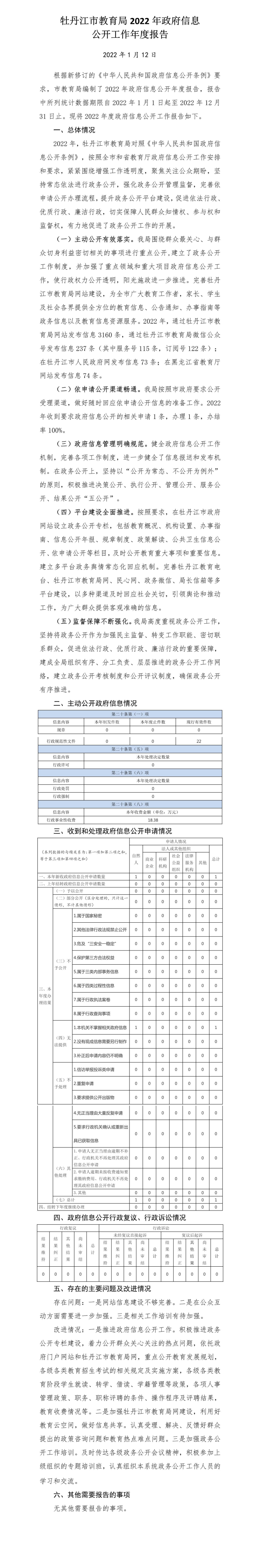 • 牡丹江市教育局2022年政府信息公开工作年度报告