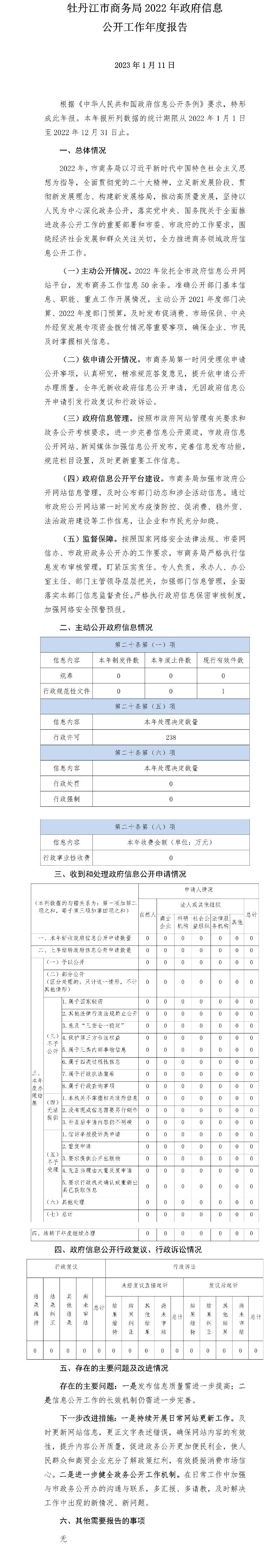 牡丹江市商务局2022年政府信息公开工作年度报告