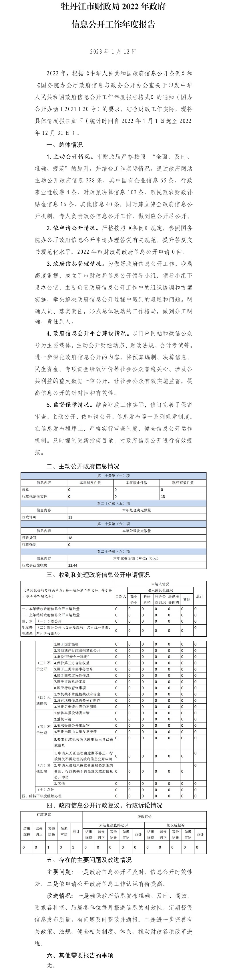 牡丹江市财政局2022年政府信息公开工作年度报告