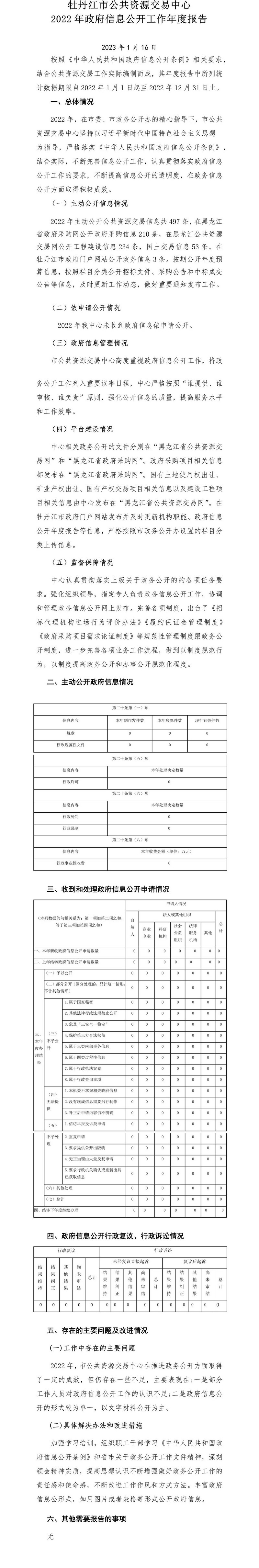 • 牡丹江市公共资源交易中心2022年政府信息公开工作年度报告