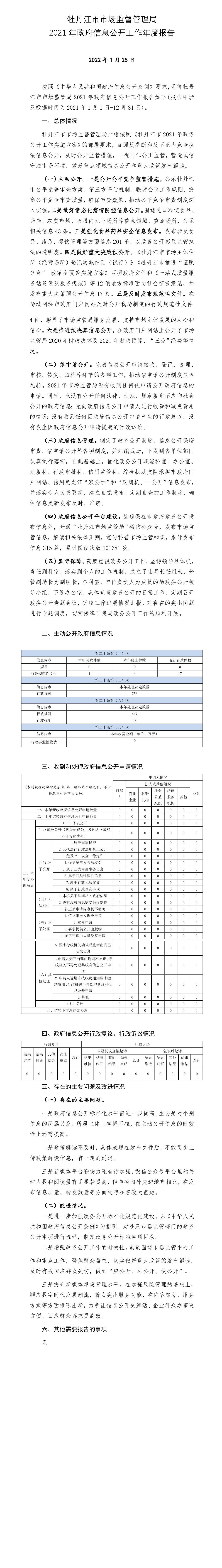 牡丹江市市场监督管理局2021年政府信息公开工作年度报告