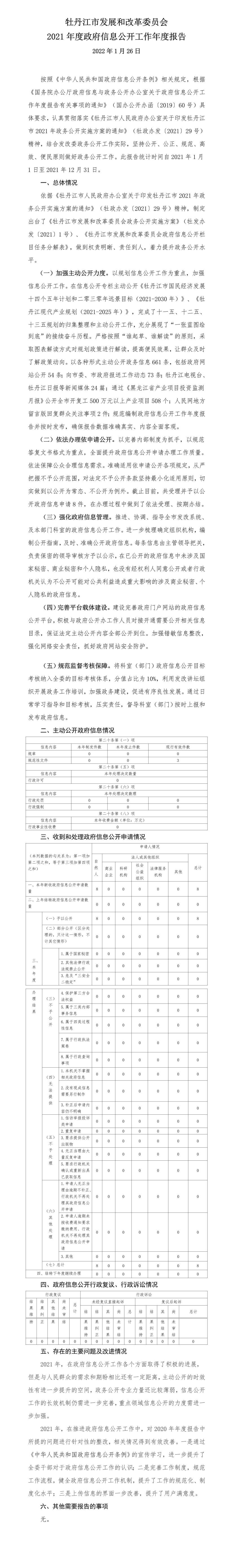 • 牡丹江市发展和改革委员会2021年度政府信息公开工作年度报告